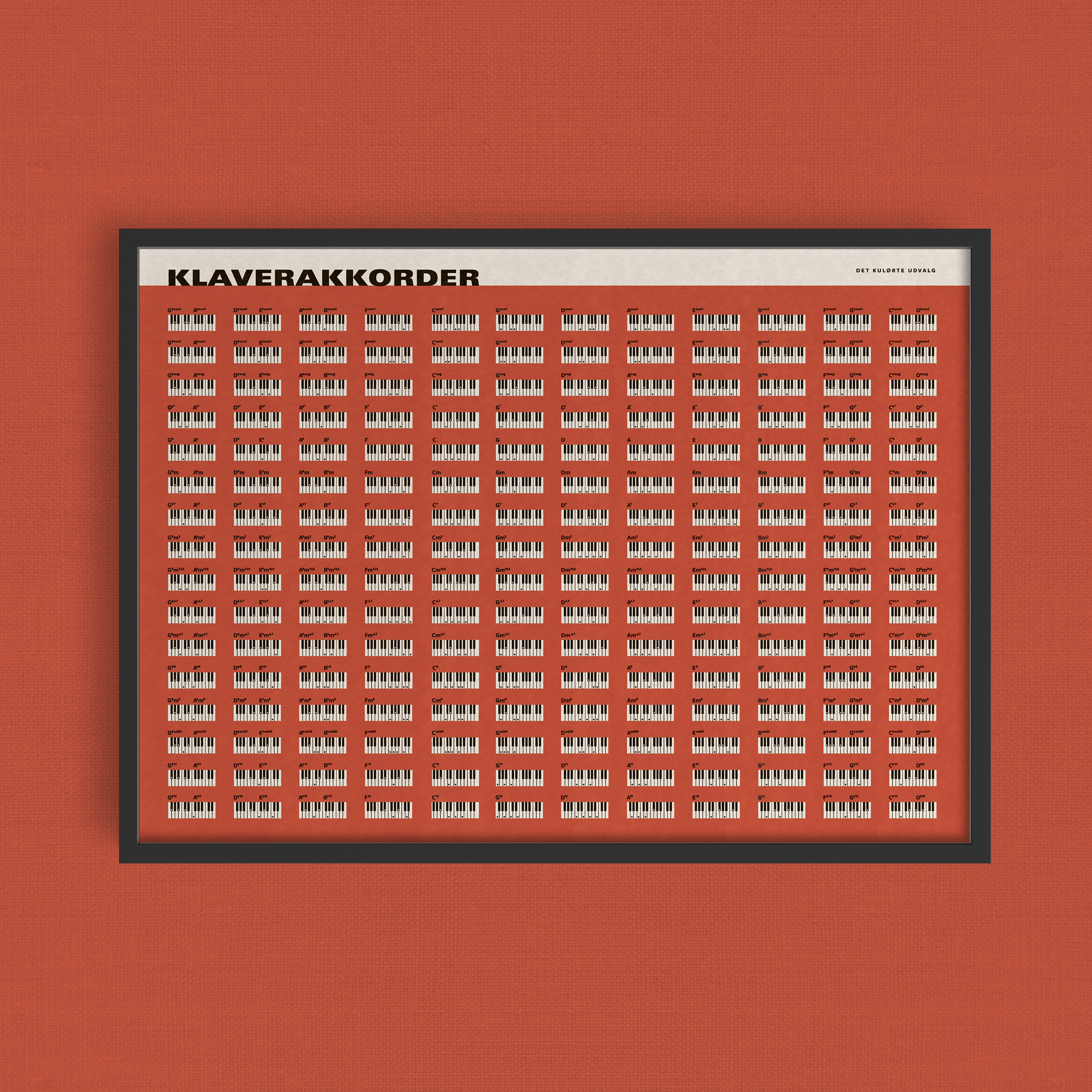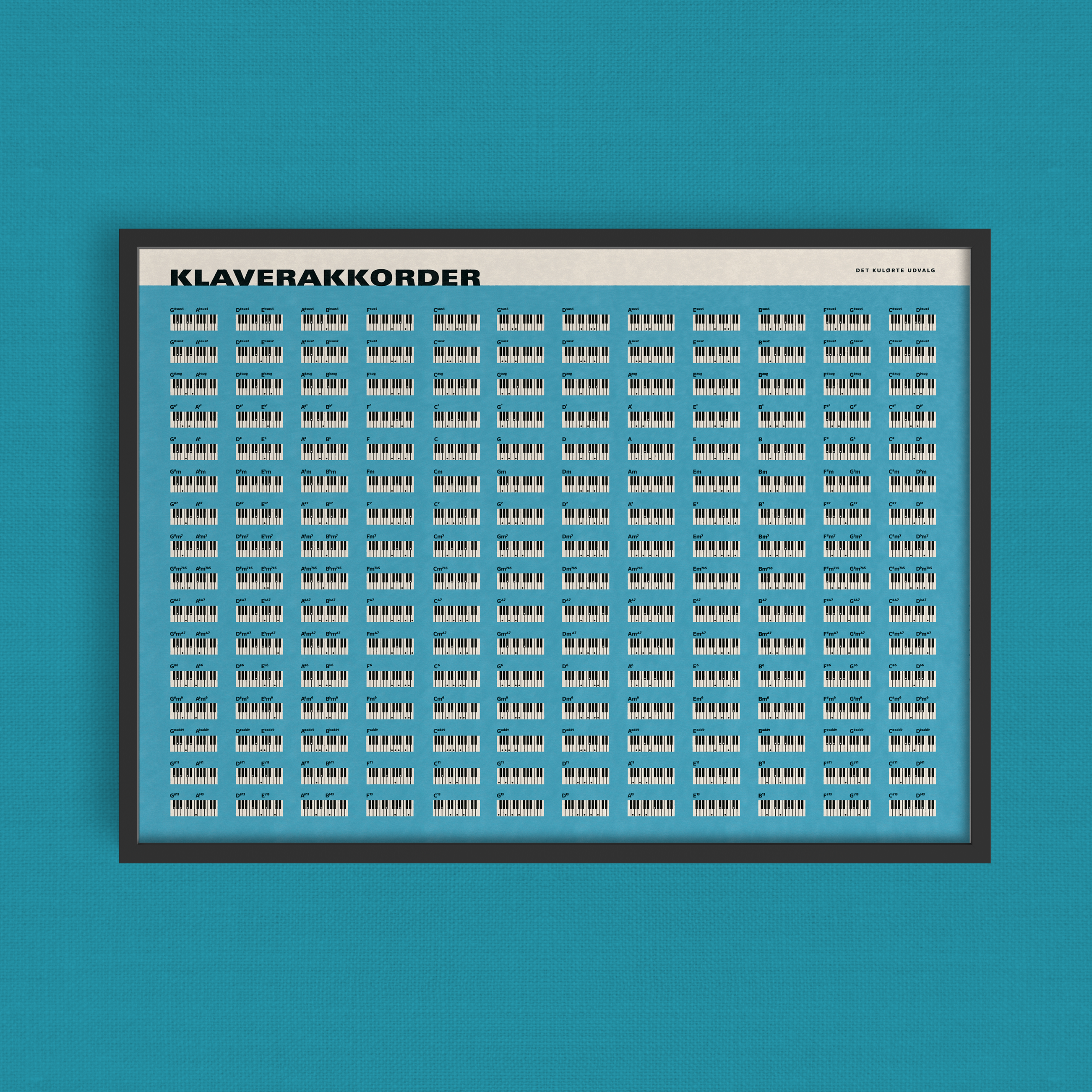 Plakat med de fleste og mest almindelige klaverakkorder.